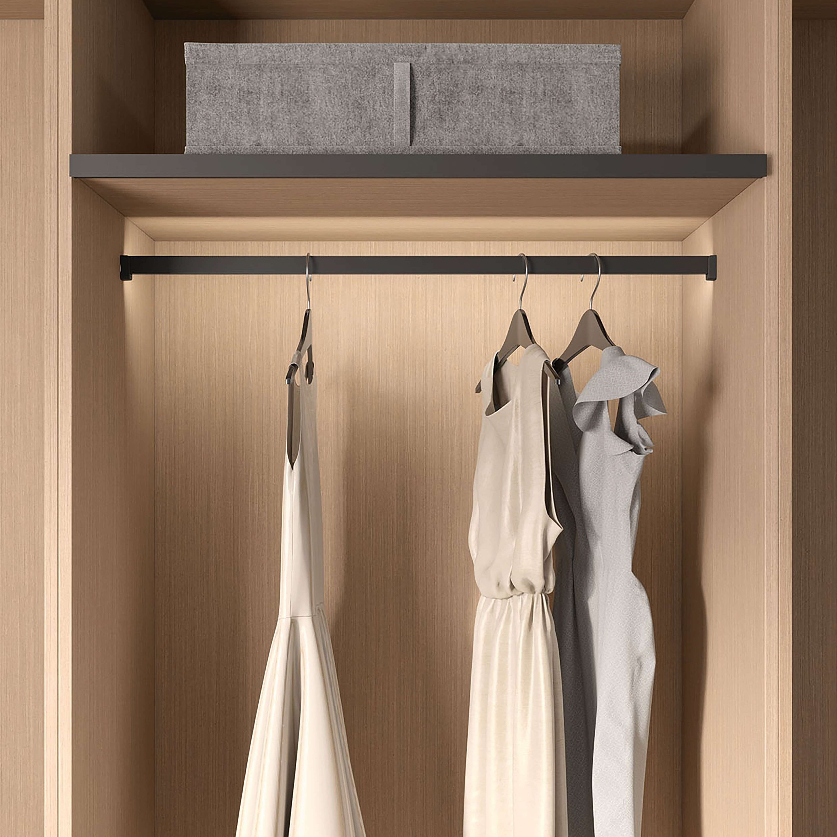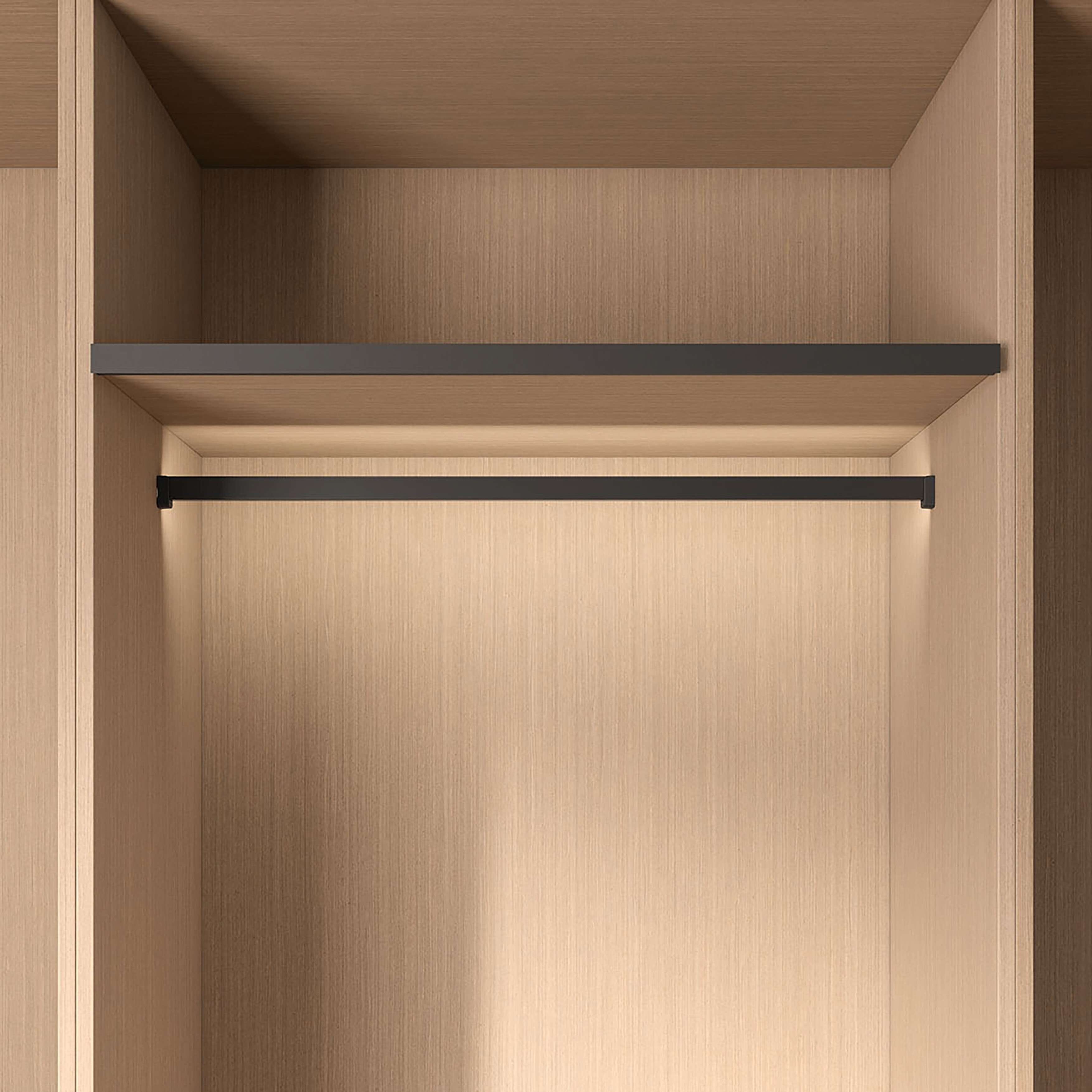 Garderobestang fra Kesseböhmer Conero med mulighet til å installere 6mm brede led-strips i fargen svart.