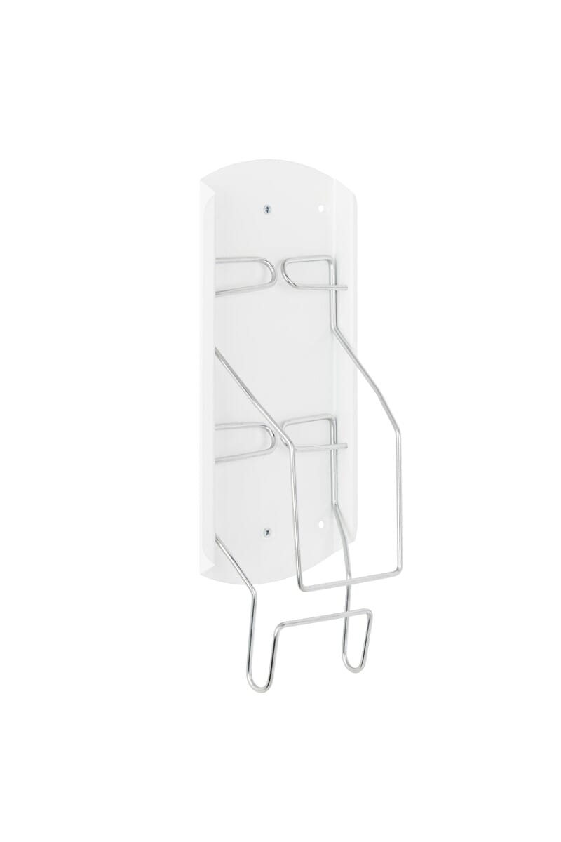 Praktisk strykejernholder til vegg i fargen hvit og krom.