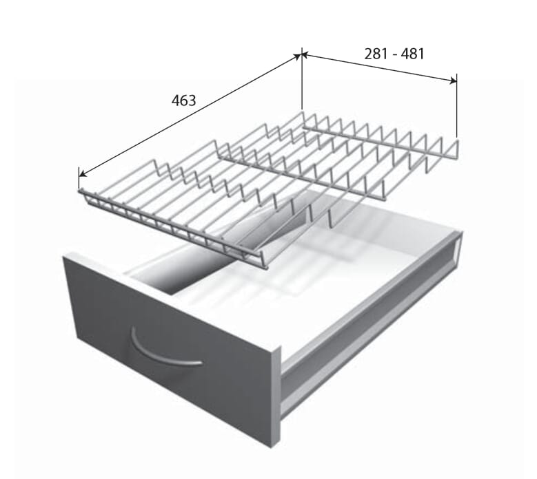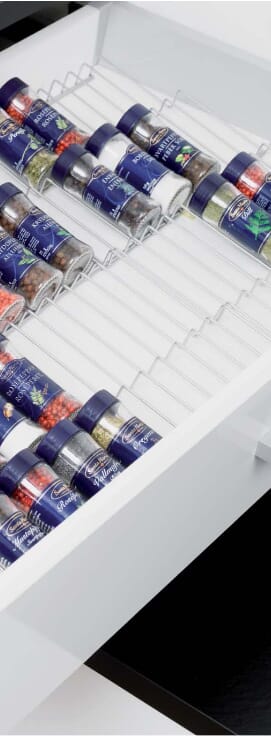 Praktisk krydderinnsats for alt av krydder. Finnes i ulike størrelser i fargen sølv. Passer for skuffer med bredde fra 40 cm til 60 cm.