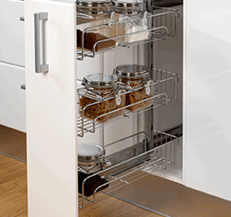 Rett benkeskapsuttrekk for sidemontering som passer til 40 cm skap. Inneholder 2 stk kurver. Finnes i størrelsen: