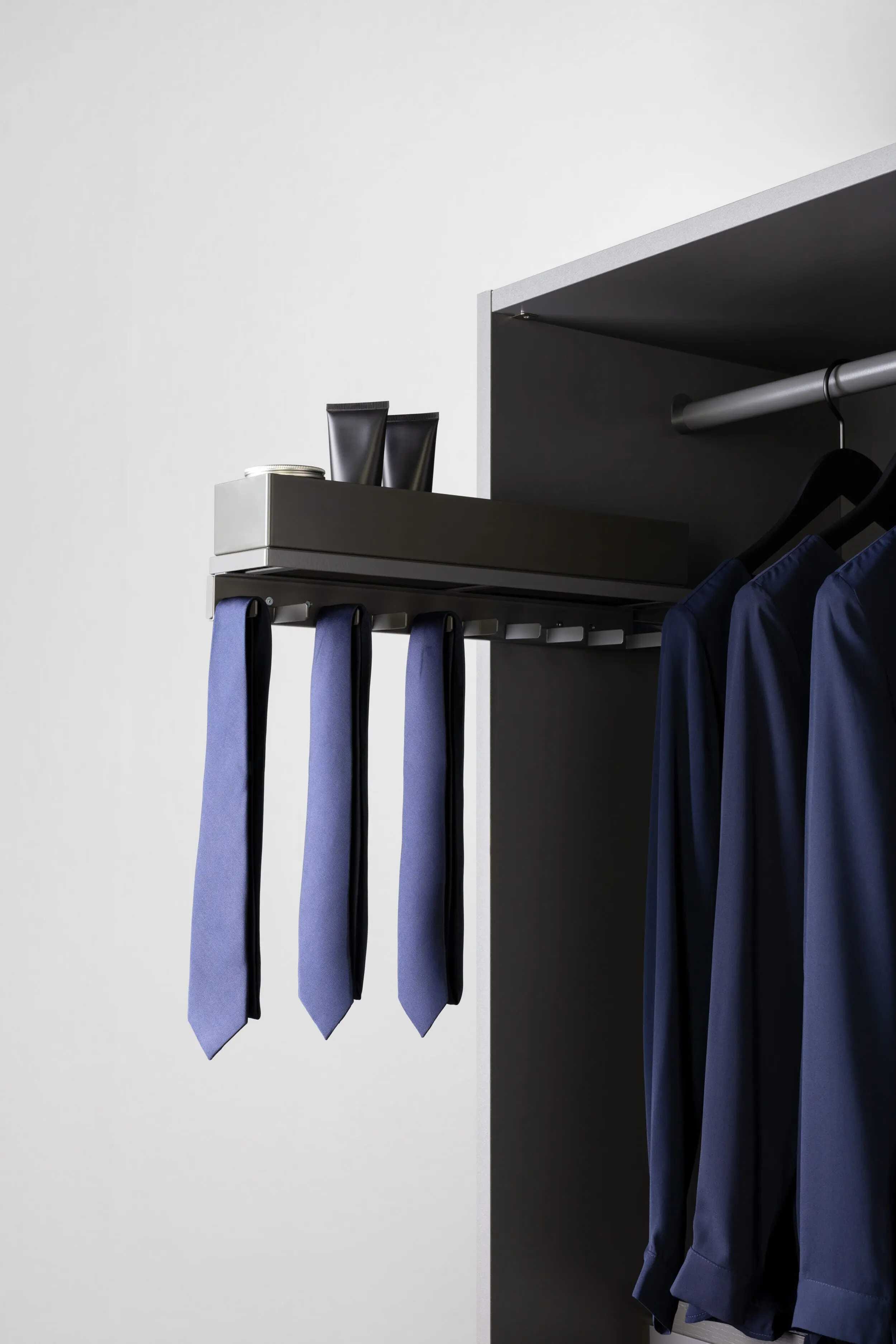 Utrekket har 10 kroker til oppbevaring Slips og belter. Medfølger også tilbehørskasse med avtakbar skillevegg og stabile kulelageskinner til jevn bevegelse.