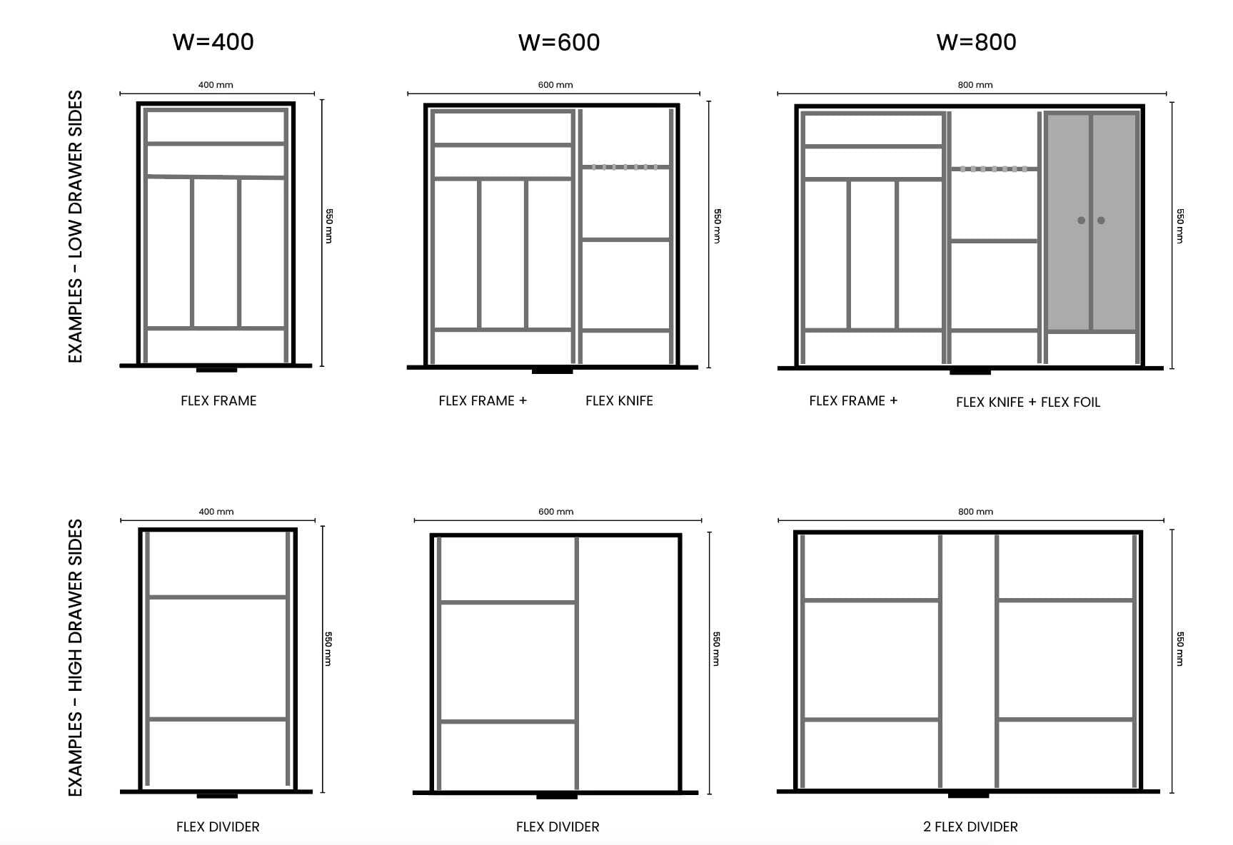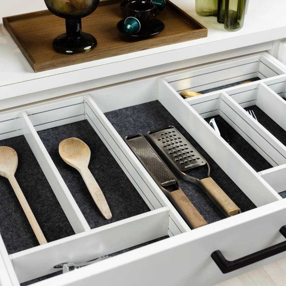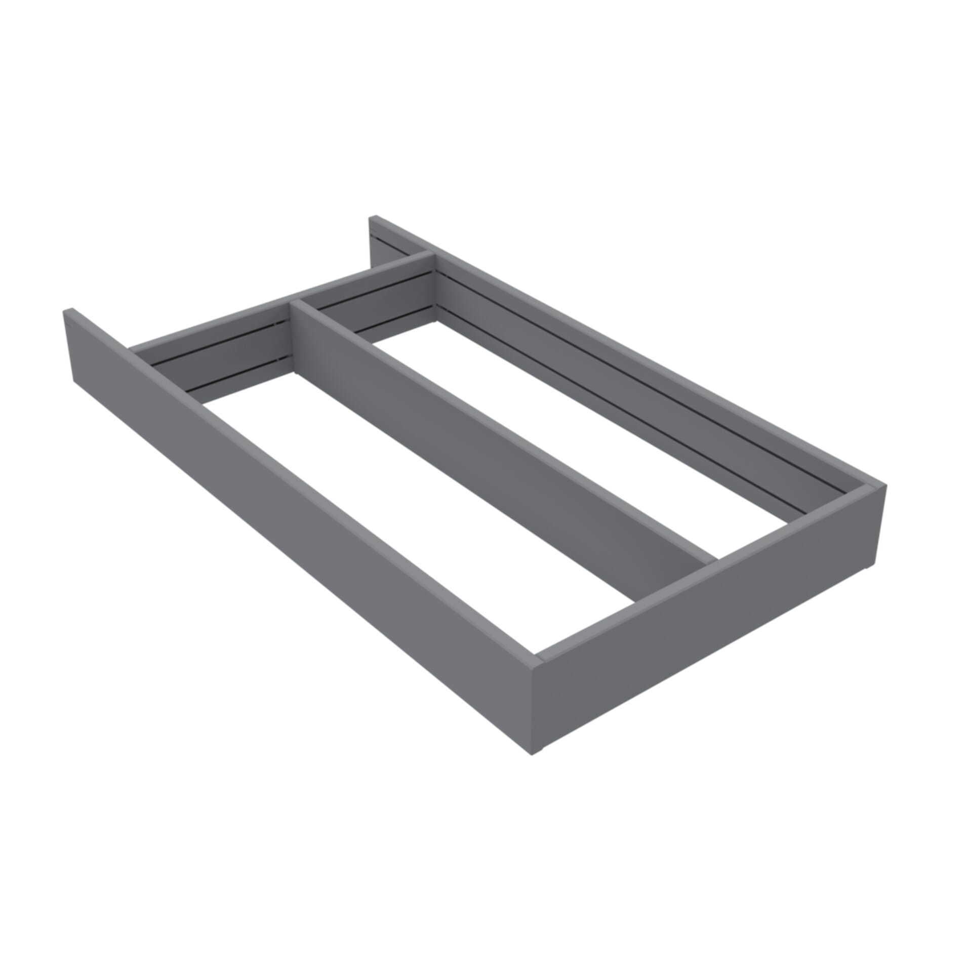 Dette redskapsinnlegget i aluminium er en fleksibel og holdbar løsning for skuffer, er justerbar og i fargen antrasitt. Passer til 500/550mm dype skuffer.