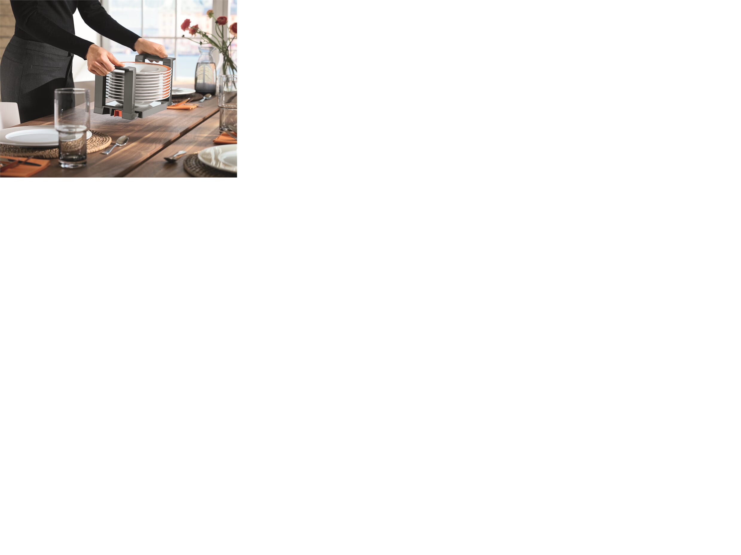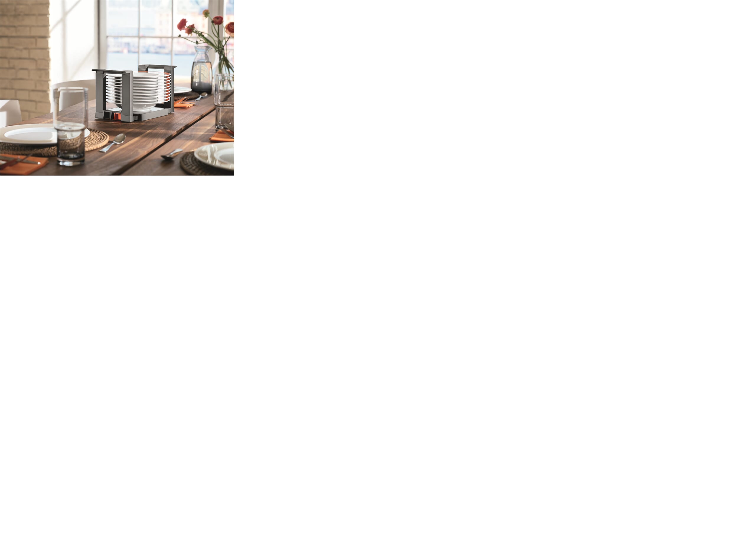 Tallerkenholderen for organisert oppbevaring av tallerkener med en diameter fra 186 til 322 mm. Den tilbyr en stabil løsning for høye uttrekk og er laget av slitesterk nylon og rustfritt stål.