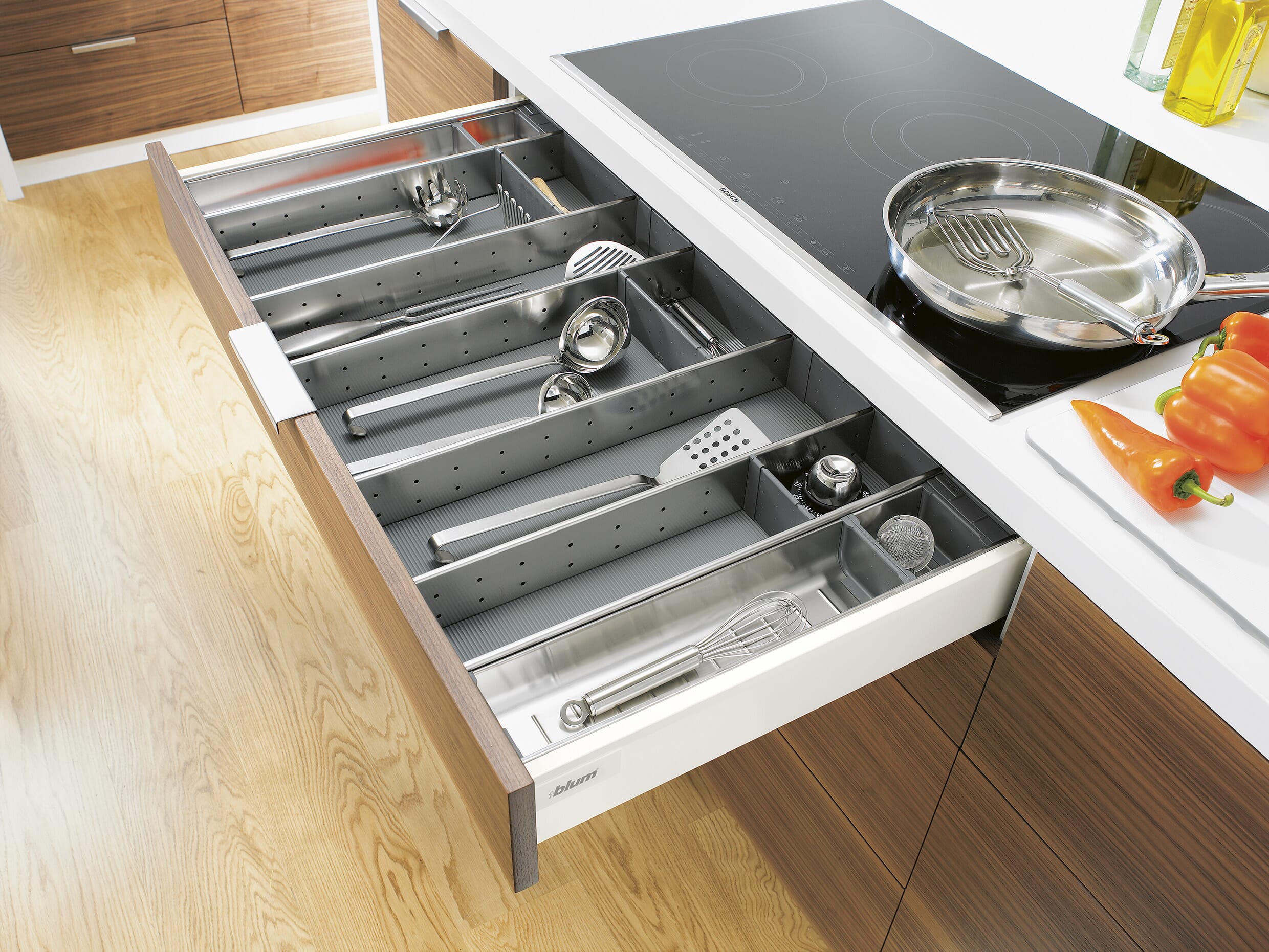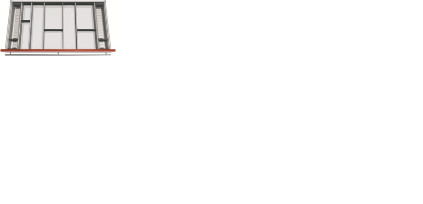 Universalsinnlegget er en fullbredde oppbevaringsløsning for Tandembox skuffer, designet for effektiv organisering.