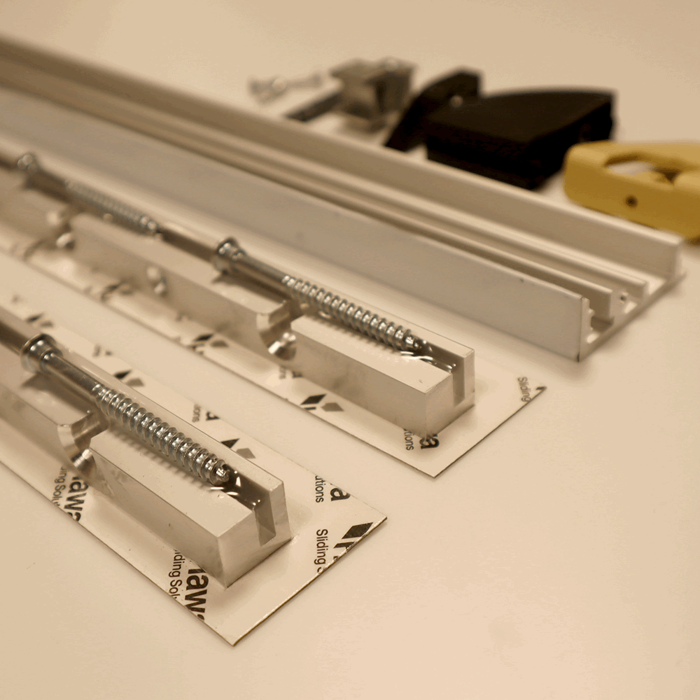 Aluminiums baseprofilsett i anodisert finish for to-dørs Folding Concepta-system. Sikrer stabil struktur og enkel montering for glatte skyvedører.