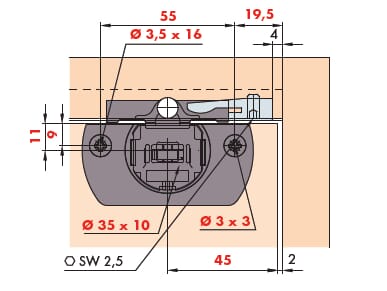 Plaststopper i grå farge for Hawa Clipo 15-systemet. brukes til å forhindre at skapdører eller lokk åpner for mye og sikrer myk stopping.