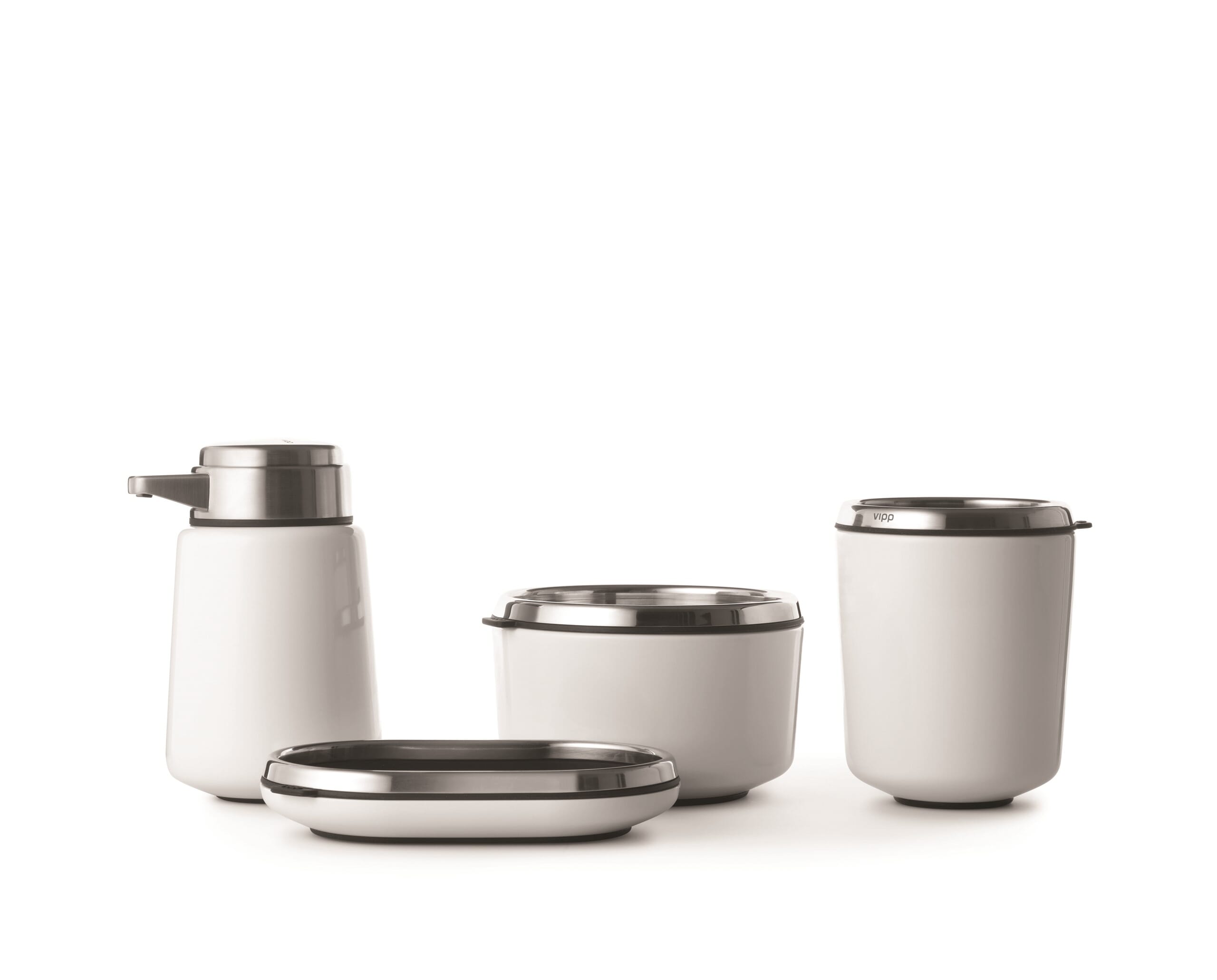 Vipp beholderen er en enkel oppbevaringsløsning for alle rom i hjemmet, og er designet for å hjelpe deg å organisere alt fra bomullsstykker til nøkler. Beholderen er laget af pulverlakkert stål med en avtakbar innerdel i bestandig gummi og et lokk i rustfritt stål.